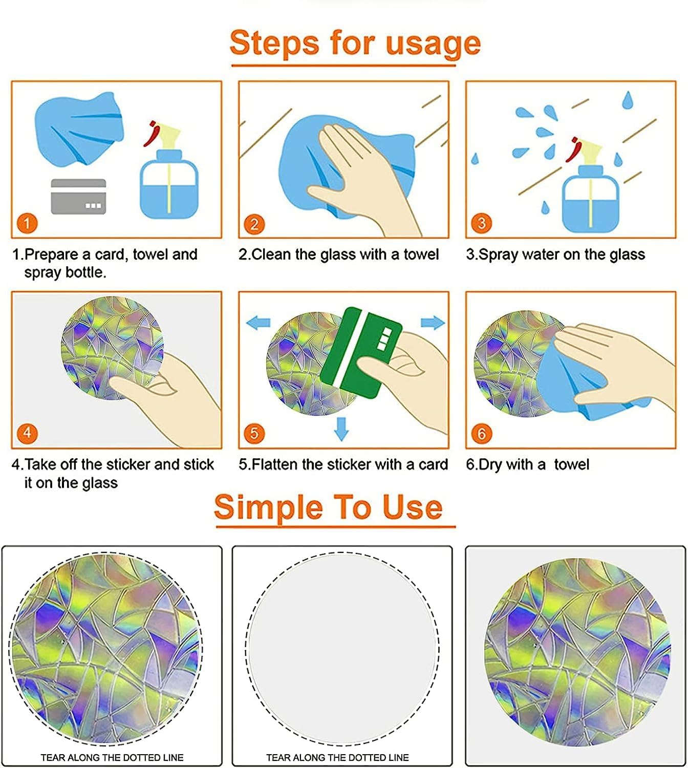 - 【 Sun Catcher Stickers 】 They reflect sunlight and create a beautiful rainbow in your room. Capture sunlight and turn it into a bright rainbow throughout the room. Sizes range from 2.1 "to 3.2".
