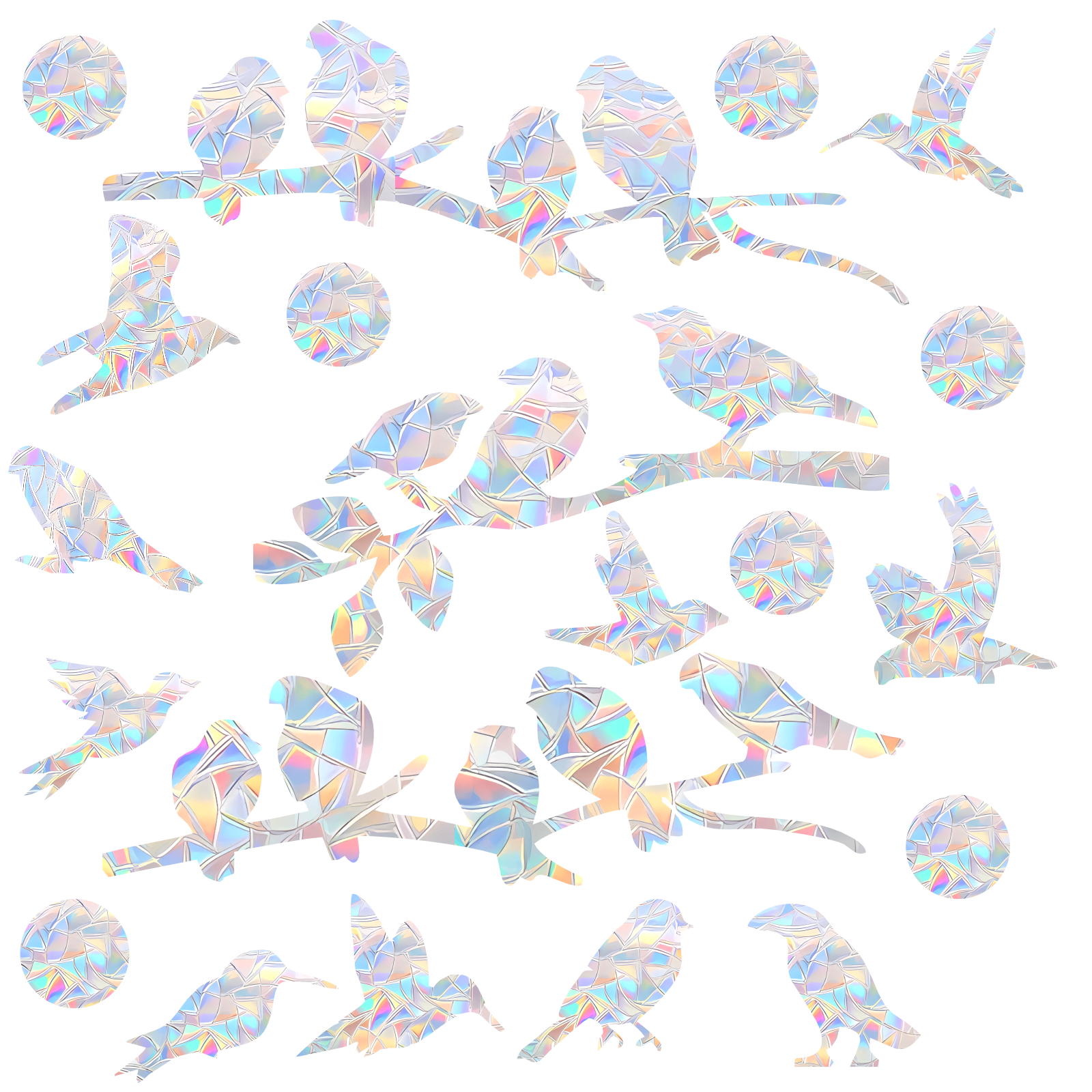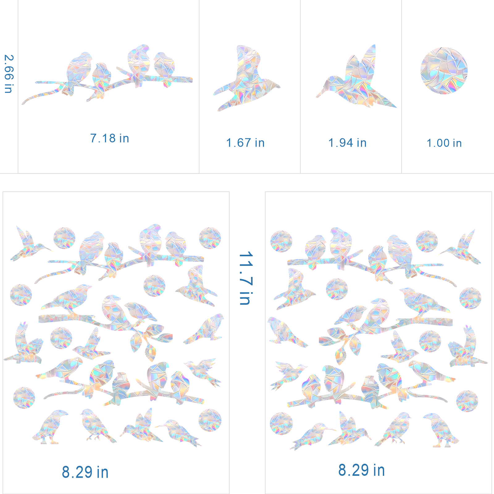 - window decals to prevent bird strikes The package contains 72PCS Bird Strikes Window Decal.These window decals can be used as a bird deterrent and beautiful home décor.