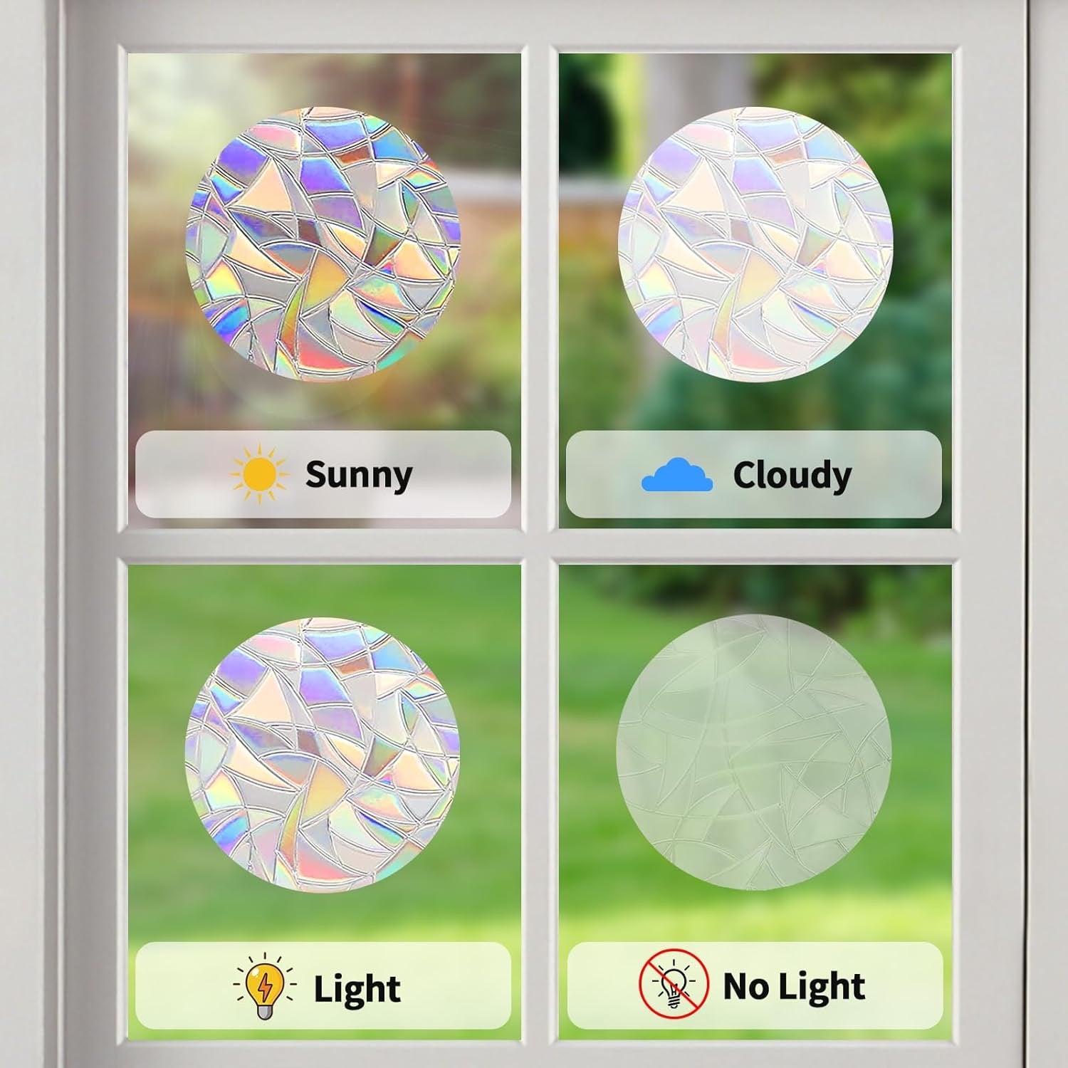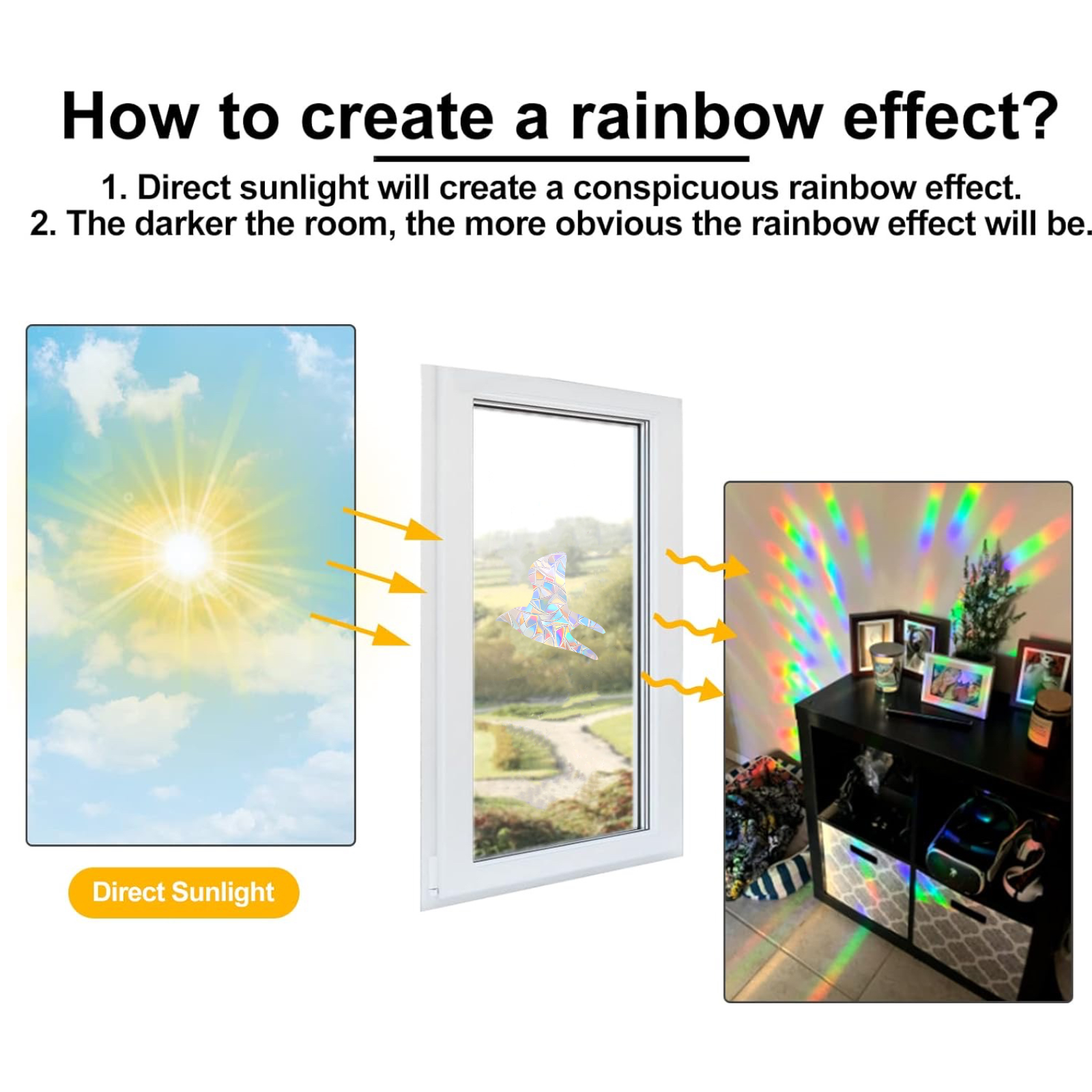 - 【 Sun Catcher Stickers 】 They reflect sunlight and create a beautiful rainbow in your room. Capture sunlight and turn it into a bright rainbow throughout the room. Sizes range from 1.2"to 6.34".